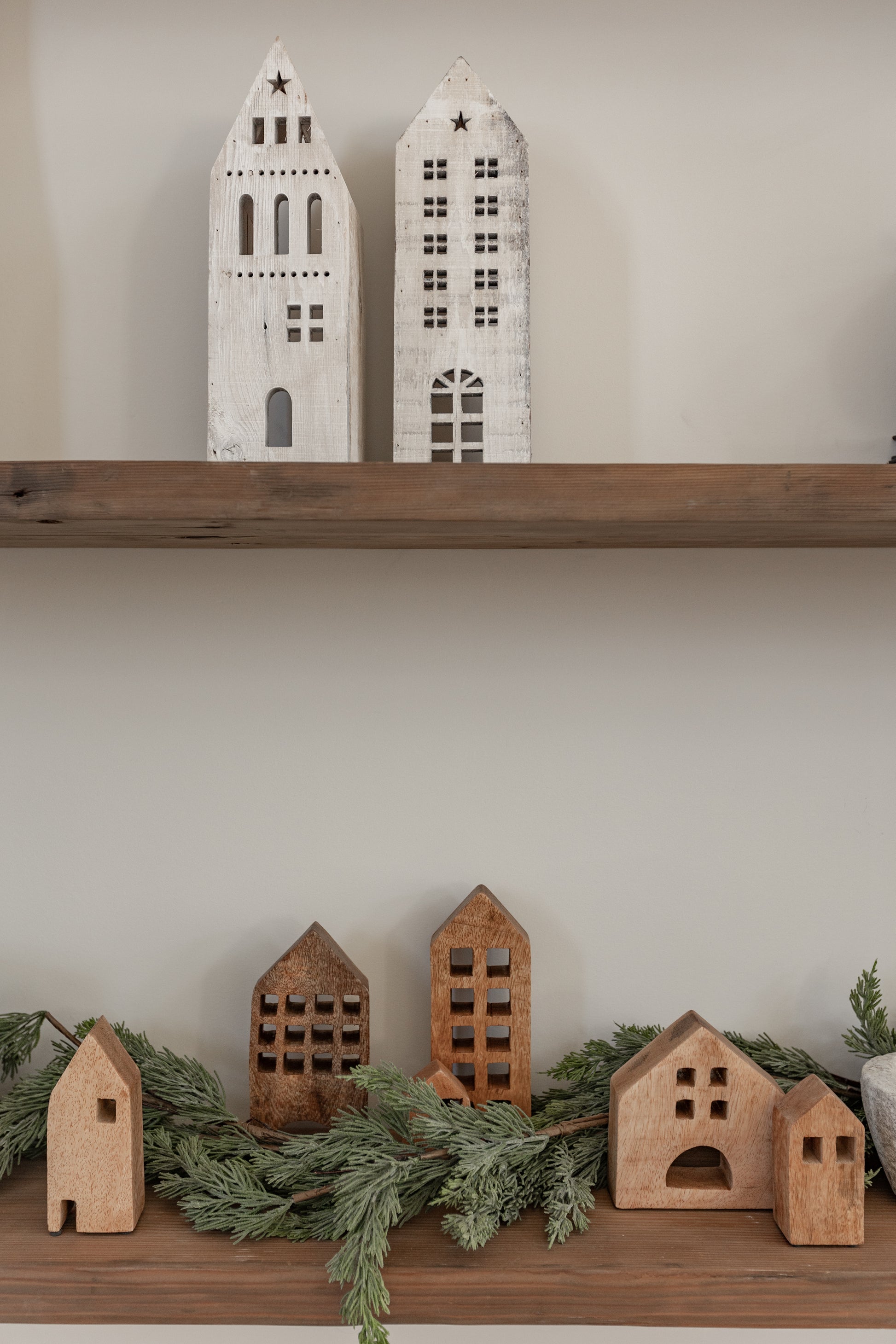 Neutral tones complement farmhouse, modern, or Scandinavian holiday décor.